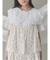 ボリュームたっぷり!華やかOPコーデ 【トップス】 大きな襟がとってもガーリー!くしゅっとした素材で柔らかく、着心地◎お洗濯もしやすいです。キャミワンピやビスチェを重ねて着るのもおすすめ。 【ワンピース】 ティアードのボリューム感がたまらない!存在感抜群のワンピースはコーデの主役に。夏は1枚で、秋冬はニットなどを仕込んでも◎ふわっとしたシルエットですが、ウエストが絞れるので、スタイルアップ効果も! 【シューズ】 リボンがふんだんに使われたサンダル。形はカジュアルな雰囲気ですが、サテンのリボンでガーリーデザインに。高さも低めでフラットなので歩きやすさ◎かかとの部分でサイズ調節ができるのも嬉しいポイント!