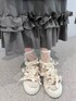 ボリュームたっぷり!華やかOPコーデ 【トップス】 大きな襟がとってもガーリー!くしゅっとした素材で柔らかく、着心地◎お洗濯もしやすいです。キャミワンピやビスチェを重ねて着るのもおすすめ。 【ワンピース】 ティアードのボリューム感がたまらない!存在感抜群のワンピースはコーデの主役に。夏は1枚で、秋冬はニットなどを仕込んでも◎ふわっとしたシルエットですが、ウエストが絞れるので、スタイルアップ効果も! 【シューズ】 リボンがふんだんに使われたサンダル。形はカジュアルな雰囲気ですが、サテンのリボンでガーリーデザインに。高さも低めでフラットなので歩きやすさ◎かかとの部分でサイズ調節ができるのも嬉しいポイント!