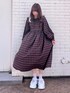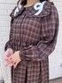 秋のチェックコーデ 【ワンピース】 大きな襟にホイップクリームのようなフリルがついたワンピース。merry定番のシルエットでふんわり体型カバーできます。落ち着いたカラー展開で秋冬にぴったりのデザインです。 【シューズ】 人気のフリルサンダルがかかとつきのスニーカーになって登場!たっぷりのフリルとボリューム感のあるソールがコーデのバランスをとってくれます。