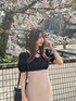 奈緒(EATME)のワンピース「スクエアネックドッキングワンピース」を使ったコーディネート