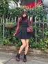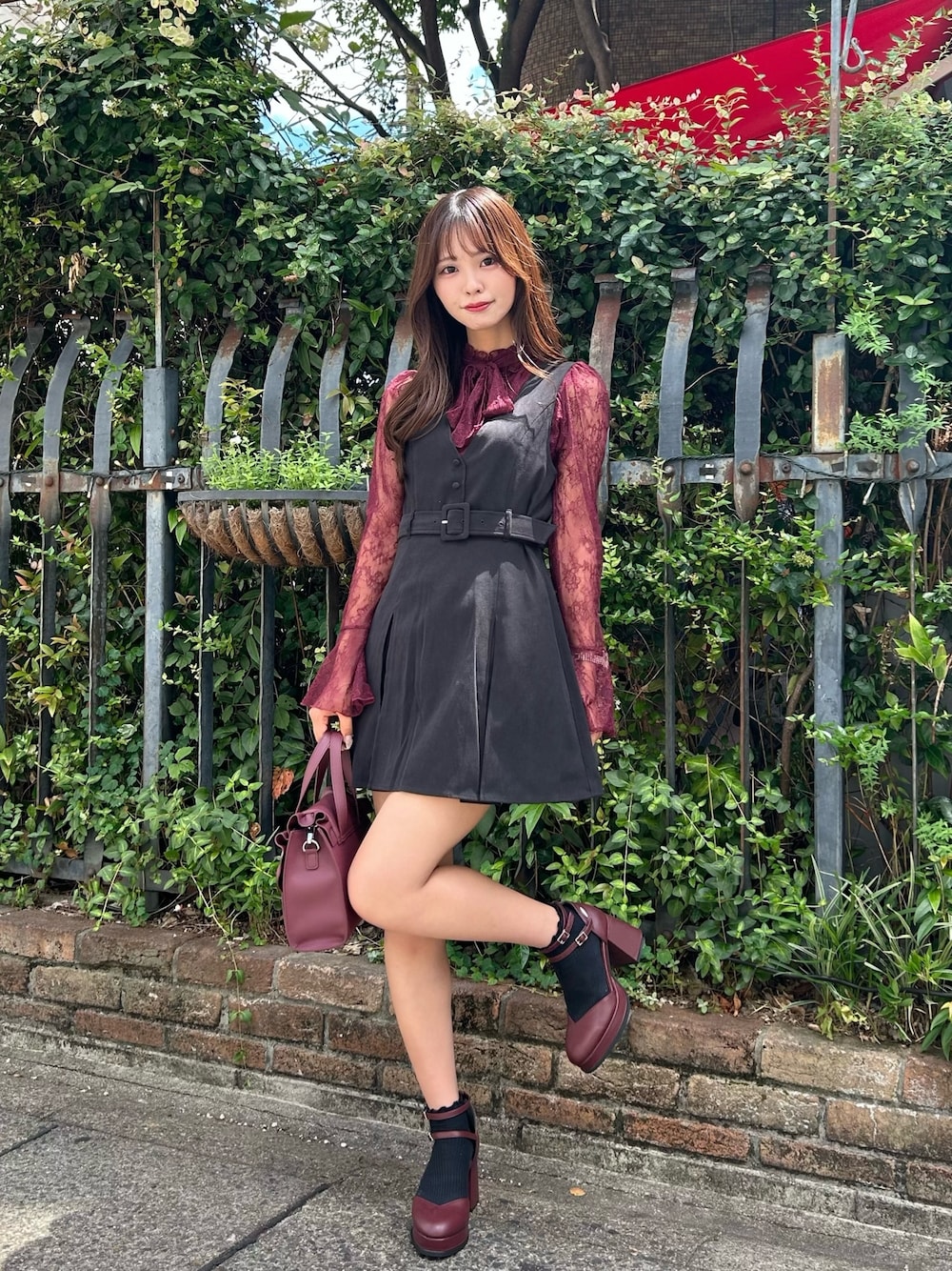BLACK×REDコーデ🥀❤︎ 深みのあるレッドはA/Wの定番カラー! 大人っぽい印象で着られるから挑戦しやすかった🙆🏻♀️❤︎ 店頭でも人気のジャンスカはウエストマークできるアイテムで細見え抜群です🌟