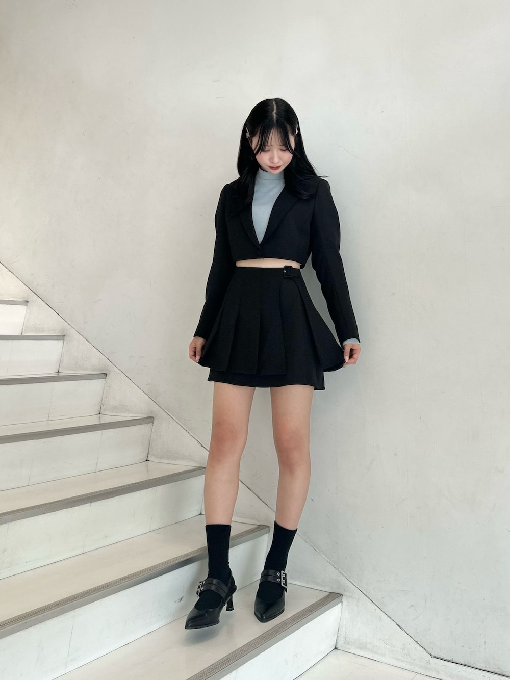 この春オススメのセットアップ♡♡ ショート丈のジャケットはシンプルでキレイめな印象🫧 腰の位置が低い骨格ウェーブにとって短丈アイテムはスタイルアップして見えるから嬉しい🥺 スカートのプリーツは取り外し可能◎ 3/1(金)店頭発売予定です♡
