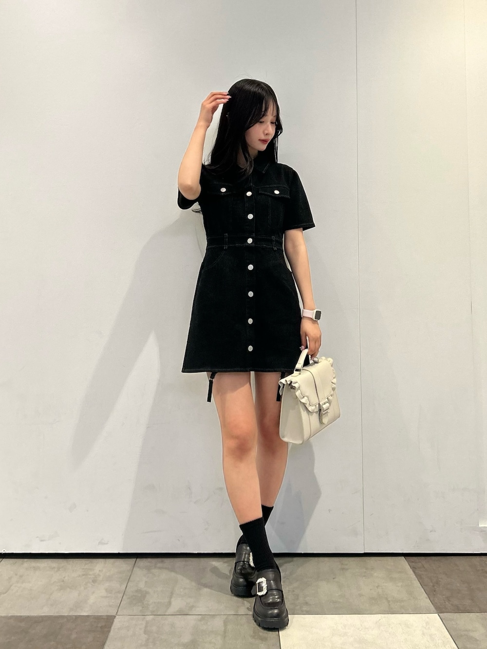 奈緒(EATME)のワンピース「ガーター付きデニムワンピース」を使ったコーディネート