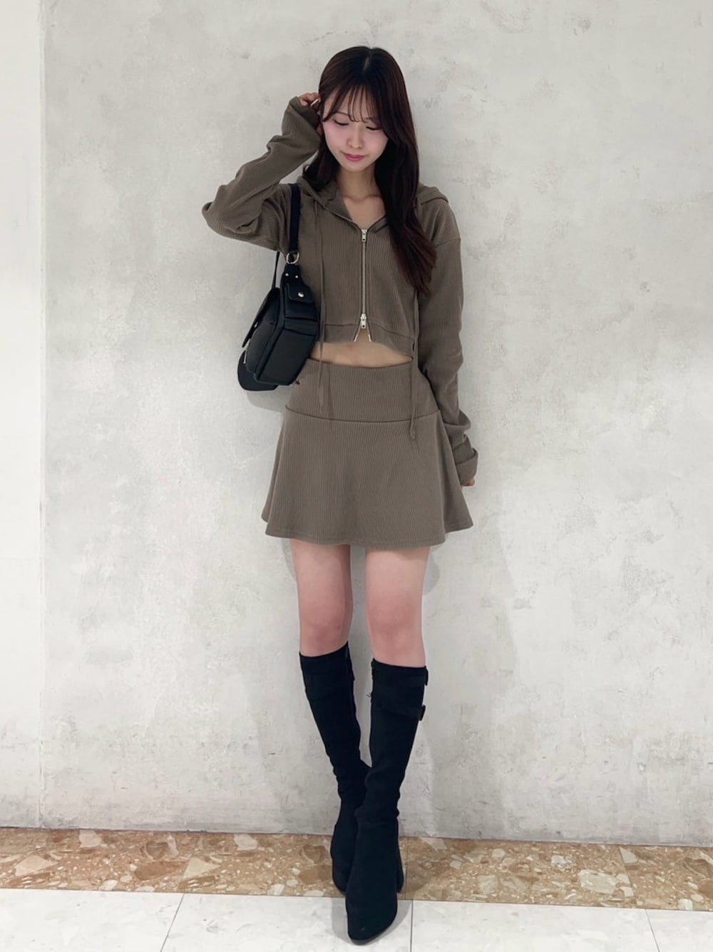 【トップス】 ふわっとした柔らかい肌触りのリブパーカー♡♡ダブルジップでウエスト肌見せも可愛いです✊🏻シンプルなパーカーデザインだから羽織りとしても万能に使えます! 【スカート】 インナーパンツ付きのスカート♡♡柔らかいリブ素材で着心地も抜群❤︎普段SサイズでFサイズを着用しています!しっかり太ももが見える丈感になります🙆🏻♀️フロントのサイドに入った刺繍と、程よいフレアシルエットが可愛い♡♡
