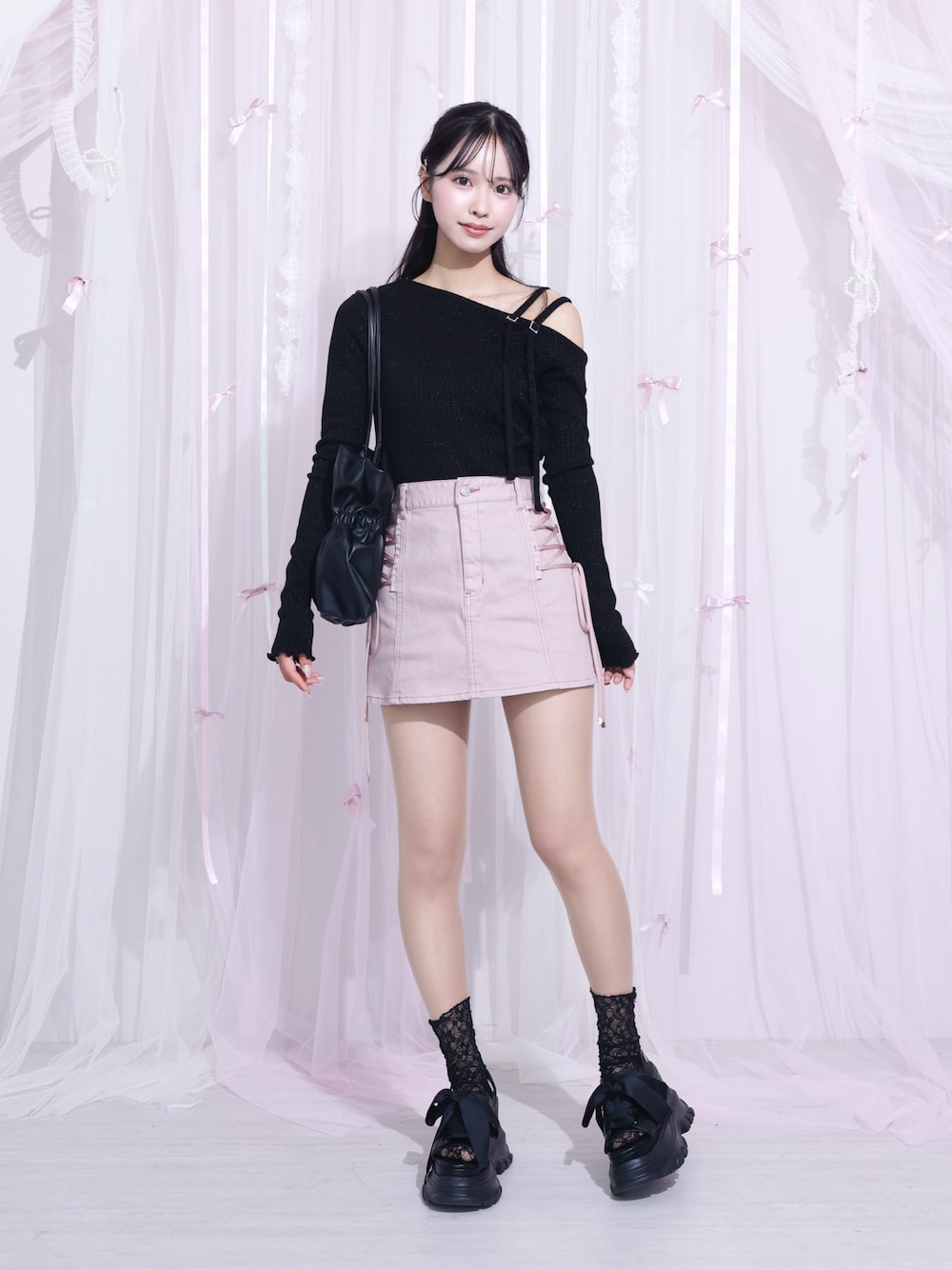 奈緒(EATME)のデニムスカート「サイドレースアップデニムスカート」を使ったコーディネート