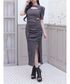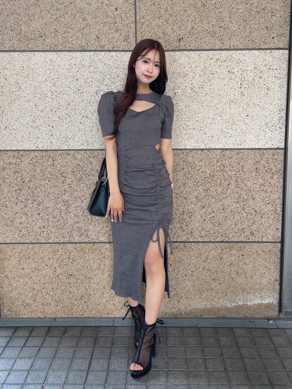 スタイル盛れるリブワンピ🩶 腰の位置高く見えるし、ギャザーがお腹周りもカバーしてくれる♡♡