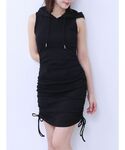 楽ちんタイトワンピ🖤 サイドギャザーで美スタイルを叶えてくれる1着✨️ 裾リボンで可愛いらしさも♡ フードにEATMEロゴパッチがついてるのもポイントです