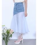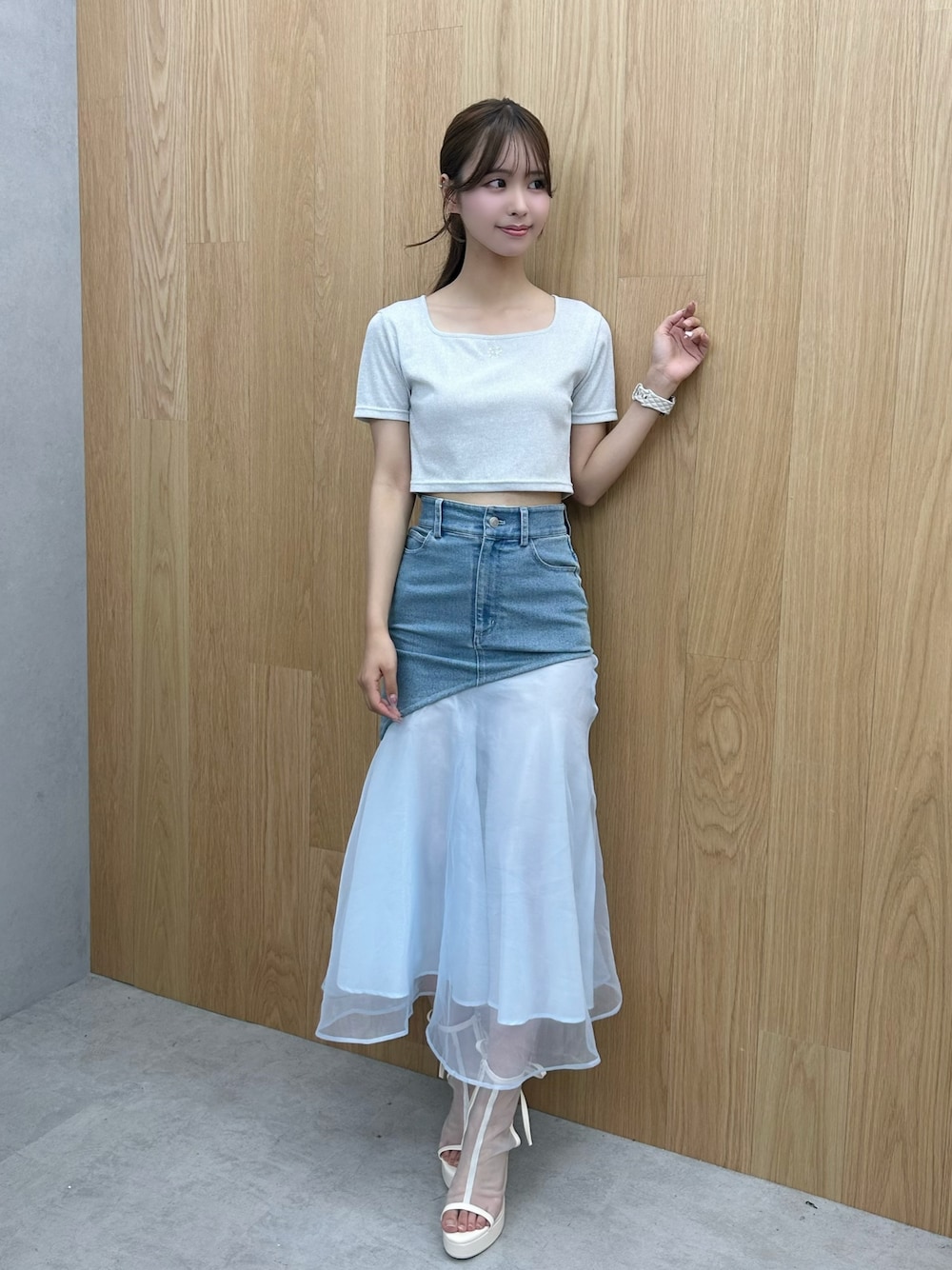 淡いブルーコーデ♡ 涼し気なカラーが可愛い♡ トップスはキラキラ感が夏にピッタリ! デニム×オーガンジーのチュールは揺れ感が上品