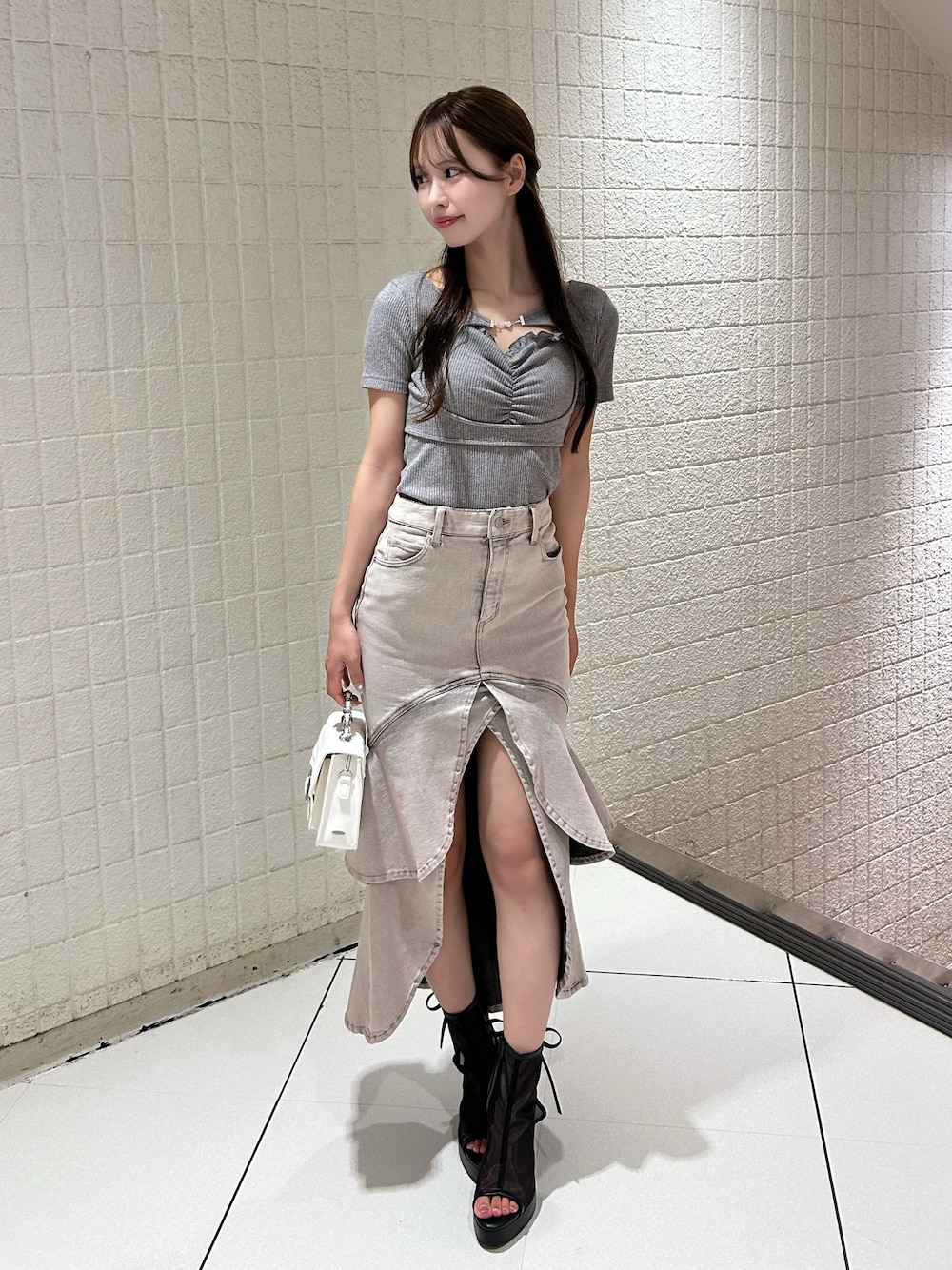 奈緒(EATME)のデニムスカート「フレアマーメイドデニムスカート」を使ったコーディネート