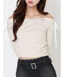 奈緒(EATME)のTシャツ/カットソー「【SETUP】リボンオフショルダーTOP」を使ったコーディネート