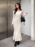 【トップス】 オフショルトップス♡♡肩のサイドのリボンが女の子らしさアップして可愛い♡後ろはシャーリングゴムだから体型にフィットします◎ 【スカート】 シルエットかわいいマーメイドスカート♡ 裾のフリルも可愛い♡スリットも入っていて抜け感◎ 【シューズ】 ピタッとしたシルエットが可愛いニットブーツ 尖ったつま先デザインでキレイめな印象に ヒールも細めデザイン♡キレイめからカジュアルまで様々なコーデに合わせれます〇