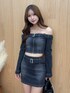 デニムセットアップ♡ 【トップス】 短丈でスタイルアップ効果抜群のトップス✨ フロントのベルトとチャックで着脱が可能◎ 後ろがシャーリングゴムになっていてサイズ感もフィットします! 【スカート】 膝上15cmのミニ丈スカート♡ タイトなシルエットでスッキリ見え✨ デニムで着回しやすい1着です♡ 【シューズ】 とにかく盛れる!美脚ブーツ♡ ストレッチの効いた素材で柔らかいから着脱も楽ちんです!ヒールの高低差も少なく歩きやすい◎ 足のサイズは23.5cmで普段はMサイズかLサイズを着用。今回は靴下を履くのでLサイズを着用してます◎