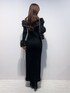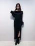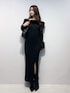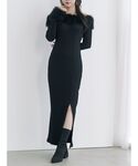 大人なブラックコーデ 【ワンピース】 肩周りと袖のファーが可愛いロングワンピース 身長162cmで膝上辺りからスリットが入ります〇ファーが上品さをアップ。縦リブで細見え効果もでます◎ 【シューズ】 ピタッとしたシルエットが可愛いニットブーツ 尖ったつま先デザインでキレイめな印象に ヒールも細めデザイン♡キレイめからカジュアルまで様々なコーデに合わせれます〇