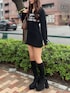 奈緒(EATME)のブーツ「バックルベルトロングブーツ」を使ったコーディネート