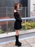 奈緒(EATME)のワンピース「BACKレースアップワンショルニットワンピース」を使ったコーディネート