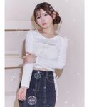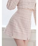 marie claire×EATME コラボコーデ 【トップス】 フロントとバックにキラキラしたロゴ入りで可愛いトップス。 サイドはリボンがあり、カジュアルになりすぎないガーリーなデザインです!スカートや、デニムなど幅広く着回ししやすいアイテムです! 【スカート】 インナーパンツ付きのミニスカート♡ ツイードが上品で可愛い♡台形シルエットで気になる腰周りもスッキリ見えします! 【シューズ】 バックリボンがついて可愛いシアーのブーツサンダル♡ヒールは太めなので安定感があって履きやすいです!
