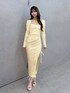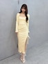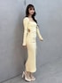 トレンドイエローコーデ♡ 【ワンピース】 ウエストのカットアウトやサイドのスリットデザインで可愛く肌見せ♡ タイトなシルエットですがリブ素材だから伸縮性があって着心地抜群です! 【シューズ】 バックリボンがついて可愛いシアーのブーツサンダル♡ヒールは太めなので安定感があって履きやすいです!