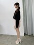 奈緒(EATME)のワンピース「パフスリーブレースアップミニワンピース」を使ったコーディネート