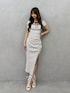 【ワンピース】 UV機能つきのリブワンピース♡♡ 半袖のトップスがドッキングされたデザインが可愛い♡バックスタイルはカットアウトデザインになっていて肌見せが楽しめます♡ 【シューズ】 バックリボンがついて可愛いシアーのブーツサンダル♡ヒールは太めなので安定感があって履きやすいです!