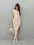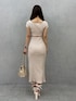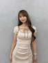 【ワンピース】 UV機能つきのリブワンピース♡♡ 半袖のトップスがドッキングされたデザインが可愛い♡バックスタイルはカットアウトデザインになっていて肌見せが楽しめます♡ 【シューズ】 バックリボンがついて可愛いシアーのブーツサンダル♡ヒールは太めなので安定感があって履きやすいです!