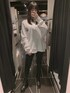 ●ゆるっとモードカジュアルコーデ●【トップス】お尻が隠れる丈感でゆるっとダボっと着れて、ショートボトムスと合わせてワンピ風コーデも可愛いです!白に黒エンブレムなので合わせやすいです◎ 【デニム】大人気のNUDEデザインでストレッチが効いていて引き締めもしてくれる美脚デニムです◎