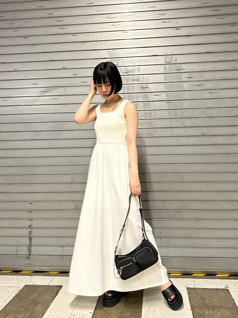 wakaba(EMODA)のワンピース「タンクフィットボリュームマキシワンピース」を使ったコーディネート