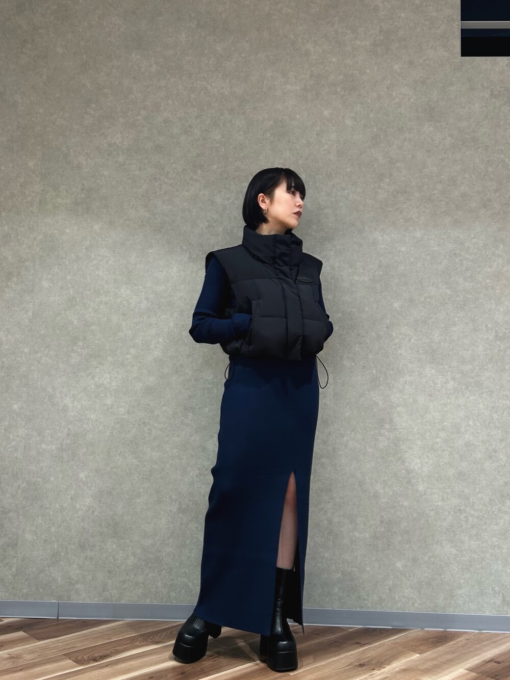 wakaba(EMODA)のダウンベスト「コンパクトショートダウンベスト」を使ったコーディネート