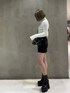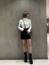 ○春のレザーコーデ○ 【アウター】 154cmでお尻すっぽり隠れる丈感です! 中が広いのでトレーナーや分厚いニットなども着込めます✨ 厚手過ぎないので軽く、春先にも大活躍です♡ 【トップス】 へそ上の短い丈感でお腹チラッと見せれます!割と厚手で着回しがしやすいです! 胸のプレートがポイントになって可愛いです♡ 【スカート】 154cmでもも中間より上丈です! 後ろポケットの刺繍がポイントで羽織なしで履いた時も可愛いです😊 へそ上ハイウェストでピタッとし過ぎないシルエットになります。 【ブーツ】 23.5cmでMサイズ着用。