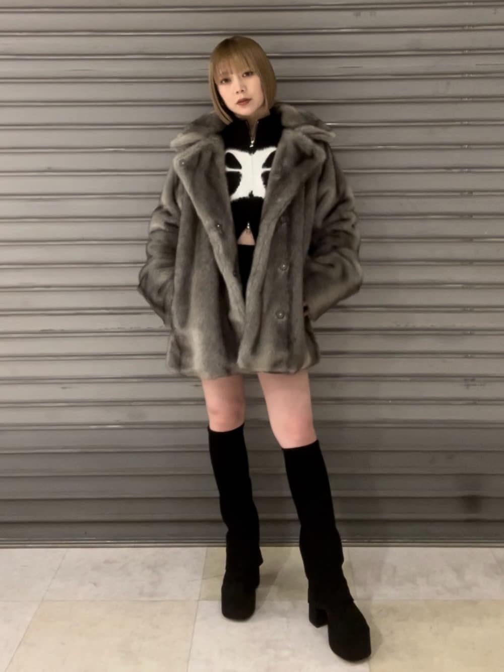 ○ファーコートでモードコーデ○ 【アウター】 154cmで、お尻がすっぽり隠れるオーバー丈で、ボリュームもあり暖かいです♡ 中が広いので、厚手のニットも着れます♩ 【トップス】 154cmで、ハイウェストボトムスを履いたら肌が見えないくらいの丈感です! ウエストのメリハリがあるので着痩せして見えます♡ 【ボトムス】 もも中間丈で、張り感のあるつるっとした素材感で、トップスはなんでも合わせやすいです😊 【ブーツ】 23.5cmでMサイズ着用です。 少し中が広いので、中敷きか靴下調節がオススメです!