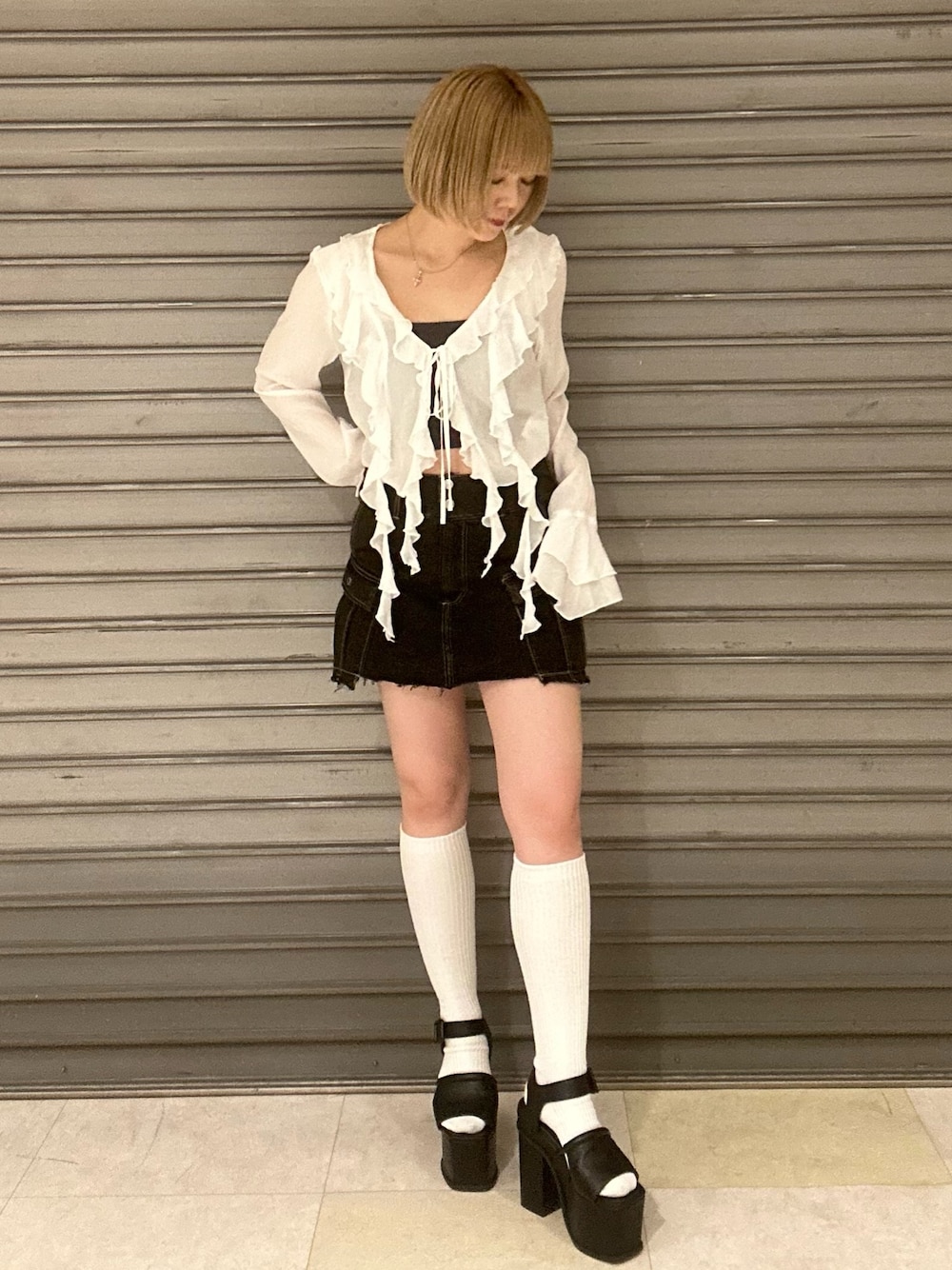 【ブラウス】 154cmでへそ丈で、前開きなので程よい肌見せができます◎ キャミソールや、ワンピースなどにレイヤードするのがおすすめです🎶 【キャミソール】 154cmで肋骨くらいの丈感で短めです。 パット付きでゴムしっかりなのでデコルテも気にせず着れます◎ 【スカート】 154cmでSサイズ着用。ぴったりサイズ。 もも中間より上の丈でインナーパンツ付きで短くても安心です! ローウェスト寄りですがしっかり足長効果があります✨ 【サンダル】 23.5cmでMサイズ着用。 少し大きめなので、ストラップ調節するとゆるすぎず履けます! 高低差が、少なく安定感があり楽に履けます◎