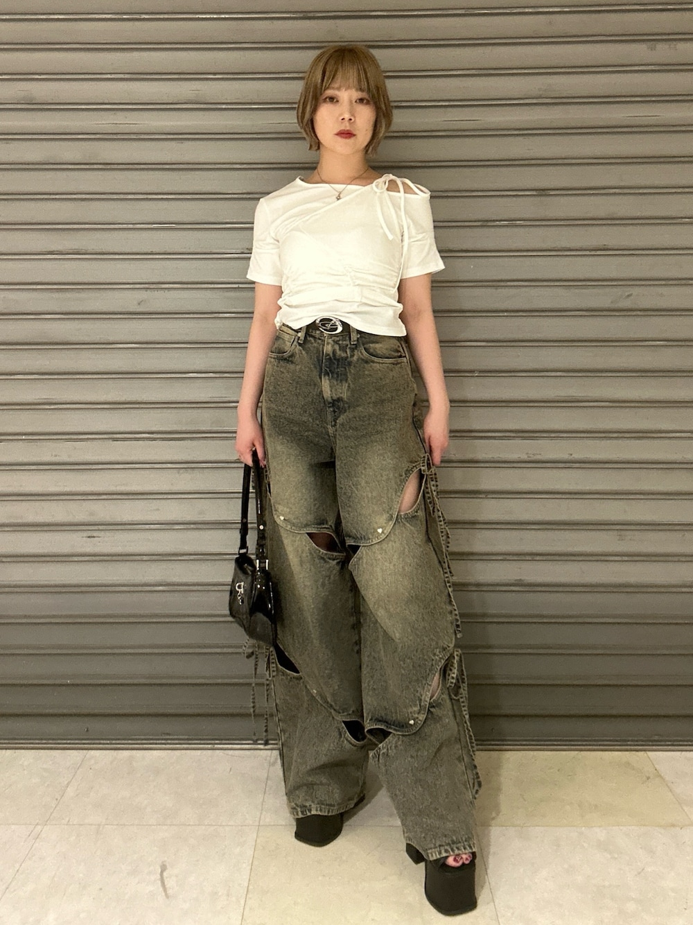 【トップス】 へそ隠れる丈感で短すぎずローウェストボトムス合わせでもお肌が見えません!✨ ぴったりしたシルエットでインナーはチューブトップなどの響かないものがおすすめです◎ 【デニム】 154cmでSサイズ着用。 厚底サンダル合わせでもかなり長めなので、ロールアップして履くのも可愛いです🫶 【サンダル】 23.5cmでMサイズ着用。 少し大きめのサイズ感です! 高低差が少なく歩きやすく安定感があります◎ 【バッグ】 内ポケットが付いていて小物も入れやすいです😊