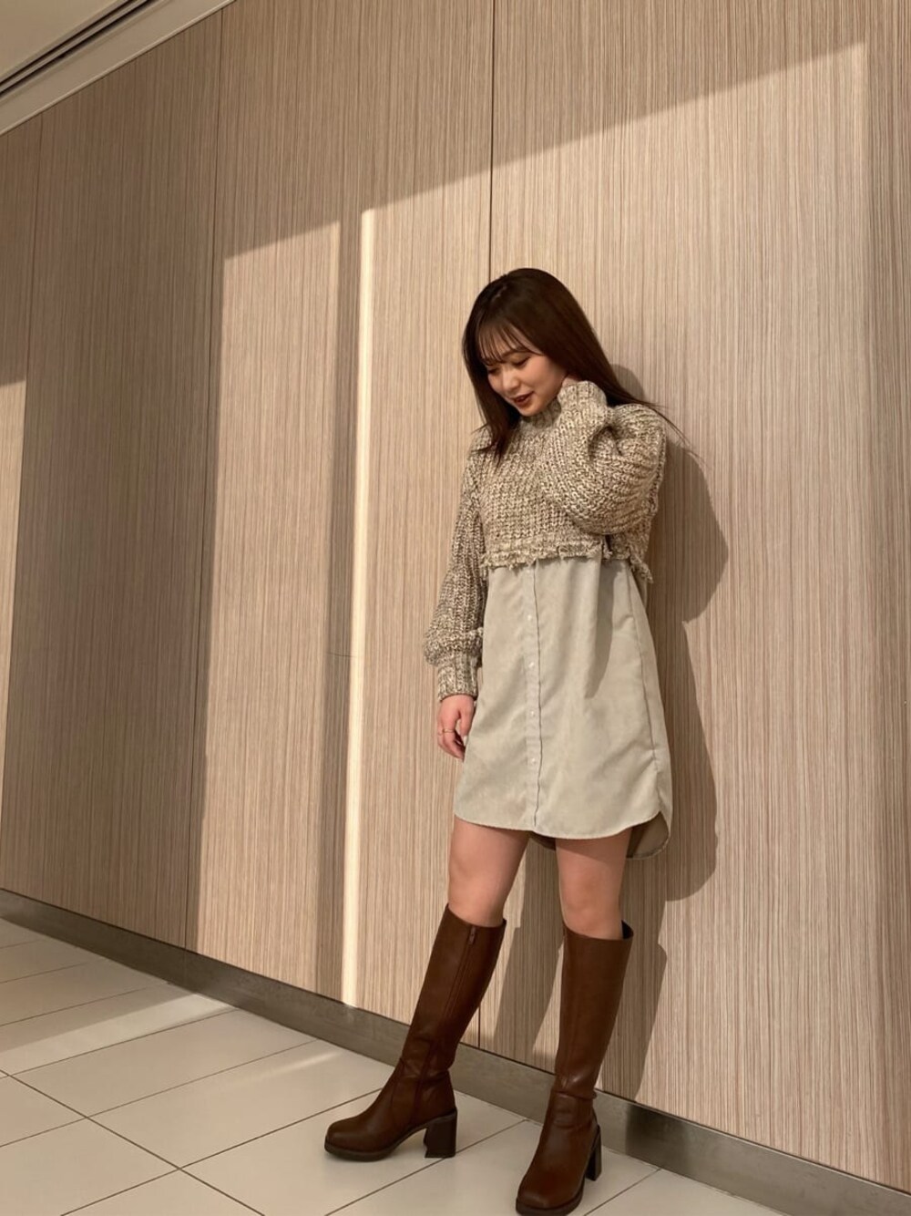 國岡朋実(MURUA)のブーツ「ラウンドロングブーツ」を使ったコーディネート