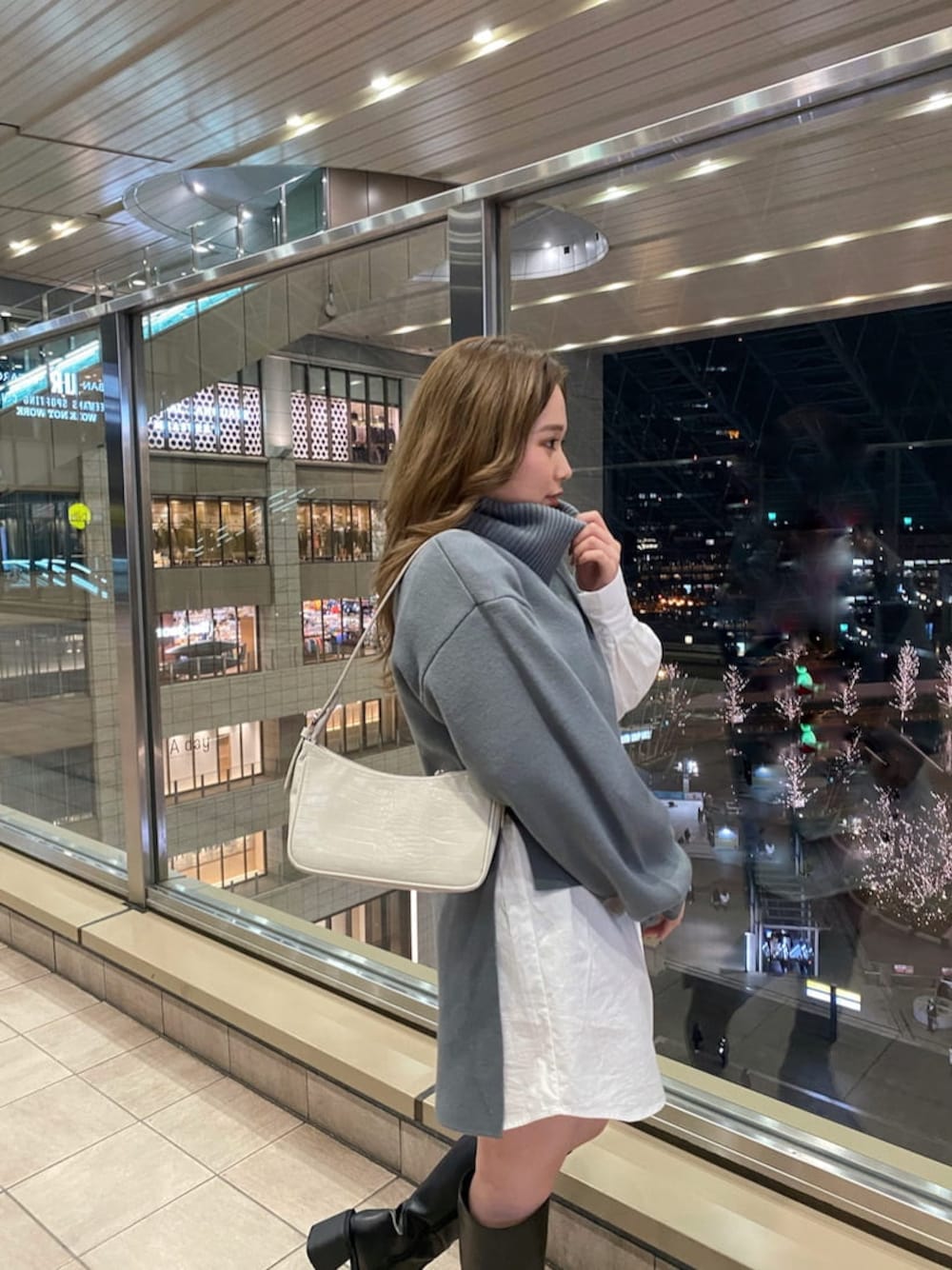 國岡朋実(MURUA)のハンドバッグ「ソフトカーブミニBAG」を使ったコーディネート