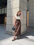 ☆柔らかい色味を使った大人っぽい綺麗目カジュアルコーデ☆【tops】MURUAで毎年人気のニット!Vネックのデザインがデコルテを綺麗に見せてくれるので女性らしいさUP間違い無しです♡おすすめポイントはバックがリボンになっているところ‼︎後ろ姿もお洒落に大人っぽくなります◎私は今回カップ付きのインナーを合わせてます!秋は上からライダースを羽織って足元ブーツに変えたりするのがおすすめ✴︎【bottom】デニム素材のタイトスカート!膝上辺りまでスリットが入っており、さりげなく肌見せしてくれるので重たくならないです◎デニム素材なのでシーズン問わず着用して頂けるので着回しもしやすいアイテムです✴︎【shoes】毎年大人気!MURUA定番のクリアウェッジサンダル✴︎クリアデザインが他にはないデザインなのお洒落に差がつきます‼︎傾斜がほとんど無いので安定感抜群!どんなコーデにもマッチする優秀サンダルです♡(24.0㌢横幅広め+足の甲高めな私で24.5㌢着用でピッタリです) 【bag】デザイン、サイズ感が何とも言えない可愛さのミニバッグ♡ ハンドバッグ/ショルダーバッグどちらでも使っていただけます◎シンプルなのでどんなコーデにもマッチ✴︎さりげなく施されたロゴがポイントです‼︎