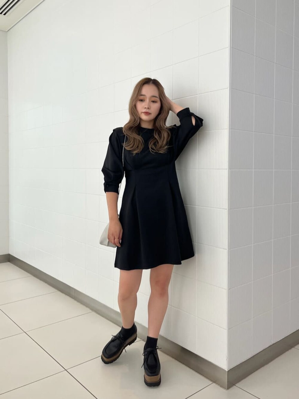 ☆美シルエットが叶うワンピース☆【one-piece】MURUA大人気のワンピがハーフスリーブで登場!生地がモチモチしているので着心地が良く、袖はボリュームスリーブなので二の腕をしっかりカバーしてくれます✴︎ウエスト部分はタックが入っているので細見えさせてくれます◎ 体のラインを拾い過ぎないので楽ちん✴︎秋は上からトレンチコートやライダースを羽織るのがおすすめです♡ロングシーズン着用できる優秀ワンピです‼︎【shoes】トレンドの厚底でスタイルUP◎フラットソールなので安定感があり歩きやすいです!幅広いコーデにマッチすること間違いなし✴︎私は長めのソックス合わせがおすすめです♡24.0cmの甲高めの私はいつもMURUAのシューズは37サイズ着用していますが36サイズでピッタリでした‼︎【bag】フェイクレザーを使用したミニバッグ!ムラのあるデザインがポイント◎ショルダー/ハンドどちらでもお使い頂けます‼︎スネークチェーンがコーデのアクセントに✴︎