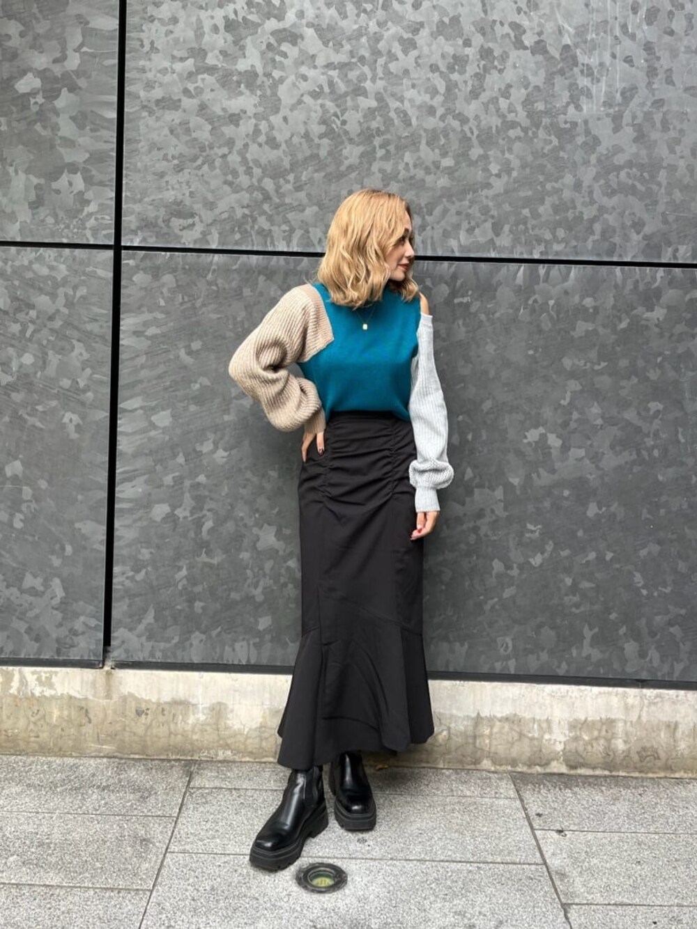國岡朋実(MURUA)のニット/セーター「カラーブロックボリュームニット」を使ったコーディネート