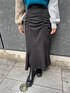 ☆ブルーが目を惹くフェミニンモードコーデ☆【tops】去年も人気のニットが今年も登場!ゆるっとした袖とチラッと肌見せで女性らし印象に◎おへそが隠れるくらいの丈感なのでout/inスタイルどちらもできます‼︎【bottom】履くだけで高見え間違いなしのフレアスカート♡フロントのシャーリングデザインがお洒落な印象に◎更に、ヒップ/ウエスト周りを全体的にカバーしてくれます◎156cm/S着用でくるぶし上辺りの丈感で、骨盤広い私でも履きやすいです。