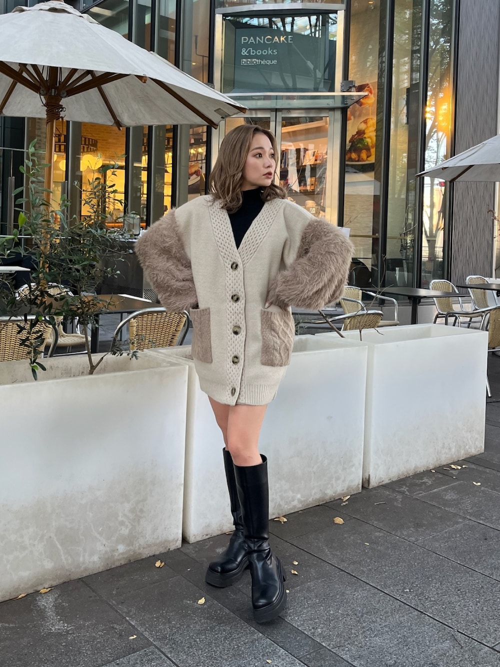 ☆ゆるっと休日cafeコーデ☆【cardigan】コーデに差がつくMURUAらしいニットカーデ♡異素材の組み合わせがお洒落見え間違いなし‼︎カーディガン/トップスどちらでも使えます◎チクチク感無く羽織って頂けて、156cmで太もも真ん中辺りの丈感になります!今回は私物のデニムパンツをインナーとして着用。【tops】毎年大人気の着回し抜群ニット!カラバリ豊富で2色持っておいて損無し◎首は詰まりず、着心地も良いのでストレスフリーで着用できます。冬はアウターの中にも着やすいitemです!【shoes】トレンドの厚底ロングブーツ!軽量でフラットなので長時間着用しても疲れない◎程よいフィット感で生地が柔らかいので履きやすいです‼︎24cm横幅広く甲高い私で37サイズがぴったり。