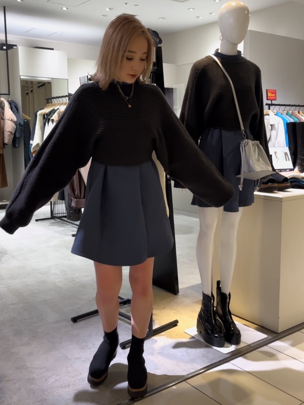 ☆着回し抜群モテワンピ☆ 〔Instagramにリール掲載あり〕【one-piece】シーズンレスで着れるワンピース!ボレロは前後2way着用可能!ワンピースはサラッとした生地で体のラインを拾いすぎず綺麗に見せてくれます✴︎ボレロは取り外しできるのでシャツやキャミソール、お持ちのワンピースなどに合わせるのもオススメ‼︎156cm/Sサイズ着用で膝上10cmくらいです。【shoes】トレンドソックスブーツ♡履くだけで一気にオシャレに✴︎厚底なのにフラットなので安定感抜群で足首までホールドされているので歩きやすいです◎ 24cm横幅広く甲高い私で36サイズがぴったり。