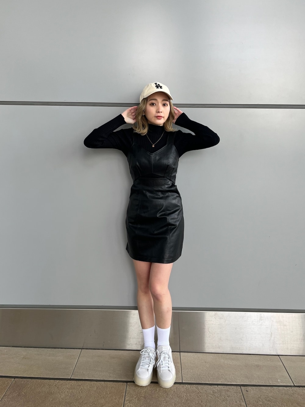 ☆ミニワンピのスポーティーコーデ☆【tops】1枚でもレイヤードstyleでも着れる万能ニット!伸縮性もあるので着心地抜群◎白は若干透け感あります。今回はヒートテックの上に着用してます!【one-piece】細見えレザーワンピ!156cm/S着用で膝上6.7cmくらいです。TシャツやロンT、ニットで合わせたりなどインナー次第でロングシーズン着用できます◎【sneaker】どんなコーデにも合わせやすいデザインのPUMAのスニーカーが登場!厚底のガムソールでスタイルアップが叶います♡カラーも薄めのベージュで足元から女性らしい印象に!!24cm横幅広めで甲高い私で24がぴったり。 【socks】MURUAロゴソックスが登場!バックのロゴがポイント♡