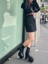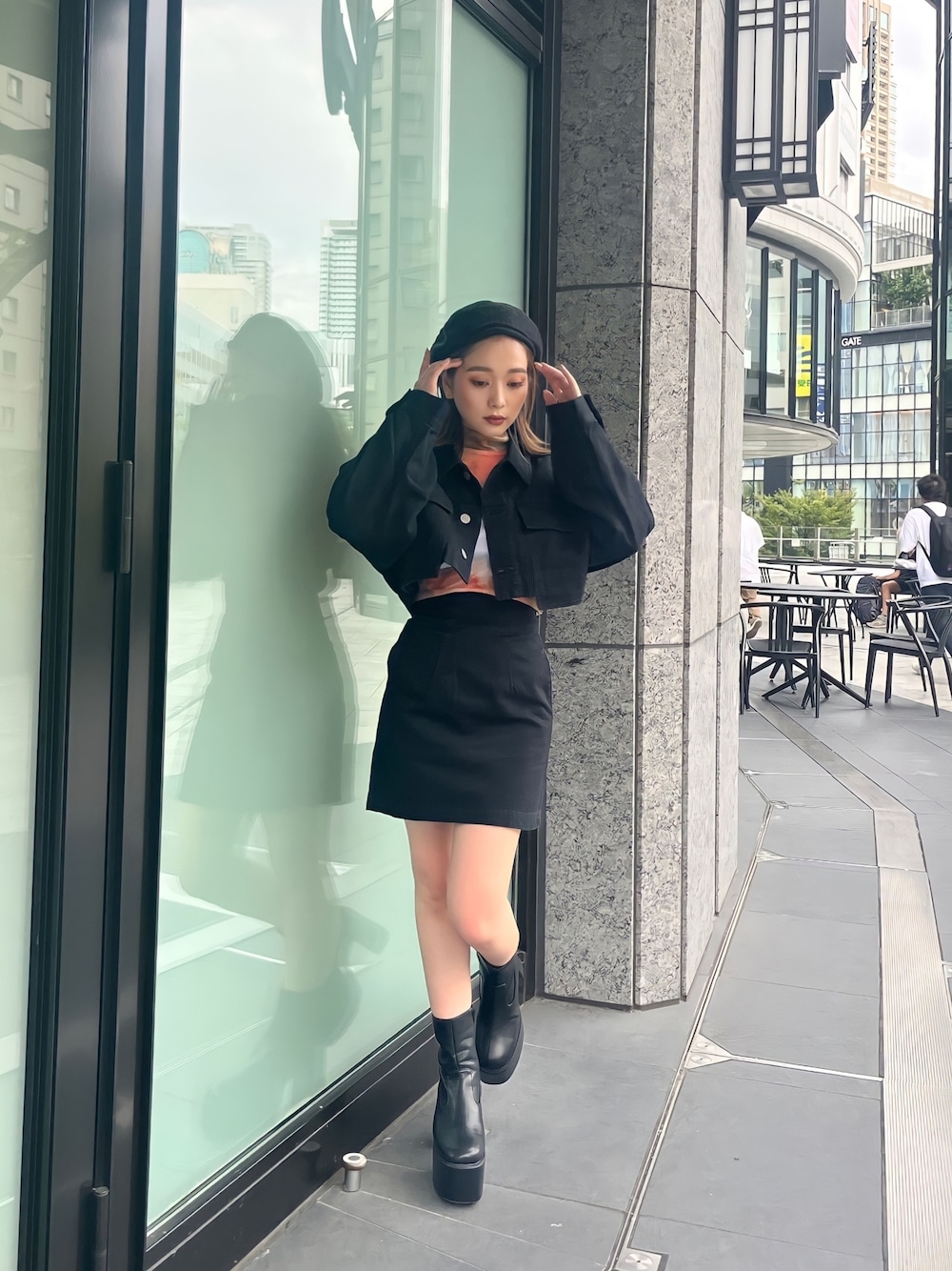 【jacket】 クロップド丈のデニムジャケット♡セットアップで着用可能。ショート丈なのでスタイルアップ効果間違いなしです!デニム生地なので秋冬はもちろん、春先も使って頂けます◎ 【skirt】 ジャケットと同素材のミニスカート♡ハイウエストなので脚長効果抜群です!156cm/S着用で膝上10cmくらいの丈感なので安心して履けます◎ 【tops】 柄が目を惹くトップス♡シアー素材でチクチク感もなし。トップス、インナーなどシーズンレスで着用できる着回し抜群アイテム◎ 【shoes】 定番厚底ブーツ♡しっかり厚底なのでスタイルアップ間違いなし!プラットフォームデザインで安定感抜群です。見た目以上に軽いので長時間着用しても疲れにくい◎24cm,甲高,幅広の私で24.5着用。