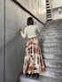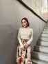 【outer】 3wayのトレンチコート♡ボレロが取り外しできるので色んな着方を楽しんで頂けます!156cm/S着用。 【tops】 程よい肌見せニット♡デコルテを綺麗に見せてくれるので女性らしさ抜群です! 【skirt】 ペイント風の柄がポイントのギャザースカート♡さらっとした柔らかい生地感なので着心地抜群!コーデの主役になること間違いなし!!156cm/FREE着用。 【shoes】 ウエスタンデザインがポイントの厚底ブーツ♡しっかり厚底なのでスタイルアップ間違いなし!ウッドソールがコーデのアクセントになります。見た目以上に軽いので長時間着用しても疲れにくい◎ 24.0cm,甲高,幅広の私で37サイズがぴったりです。