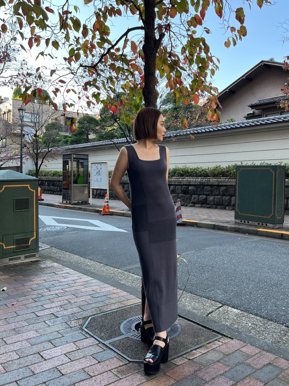 國岡朋実(MURUA)のワンピース「ナローニットワンピース」を使ったコーディネート