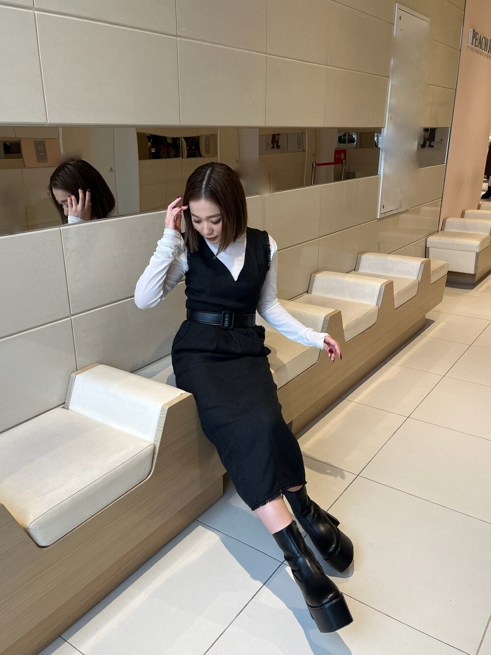 【tops】 着回し抜群!万能シアータートル♡1枚で着てもインナーとして着るのもおすすめ! 【jumper-skirt】 ツイード素材が目を惹くジャンパースカート♡Iラインのシルエットなので大人っぽく綺麗な印象にしてくれます!体のラインも拾いにくく、レザーのベルトでウエストマークしっかり付けて更に細見え効果抜群です◎156cm/FREE。 【shoes】 定番厚底ブーツ♡しっかり厚底なのでスタイルアップ間違いなし!プラットフォームデザインで安定感抜群です。見た目以上に軽いので長時間着用しても疲れにくい◎24.0cm,甲高,幅広の私で37サイズがぴったりです。