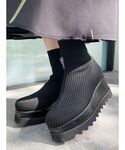 【tops】 ベーシックで着回し抜群のハーフスリーブニット♡どんなボトムスにも合わせやすいです! 【shoes】 MURUAで大人気のソックスブーツがバージョンアップして登場♡リブデザインになっているのでフェミニンにもモードなコーデにも合わせれます◎ 傾斜もあまりないので履き心地抜群!24.0cm,甲高,幅広の私で37サイズがぴったり。
