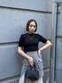 國岡朋実(MURUA)のニット/セーター「ハーフスリーブタイトリブニット」を使ったコーディネート