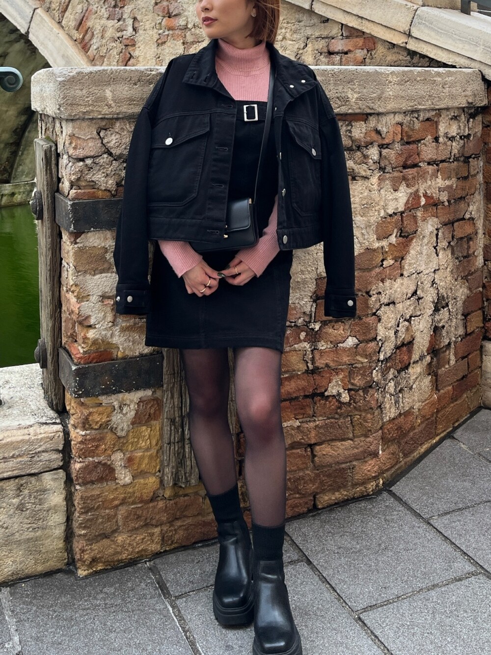 【jacket】 シルエットが可愛いデニムジャケット♡スタンドカラーにして羽織ることもできます。大きなポケット付きでデザインも周りと被りにくいです◎同素材のベアワンピースとセットで着用するのがおすすめ!着回しも抜群です。 【one-piece】 ジャケットと同素材のデニムのベアワンピ♡着るだけでオシャレに!!1枚で着るのはもちろん、インナーと合わせたコーデもおすすめ◎156cm/S(ミニ丈)着用。
