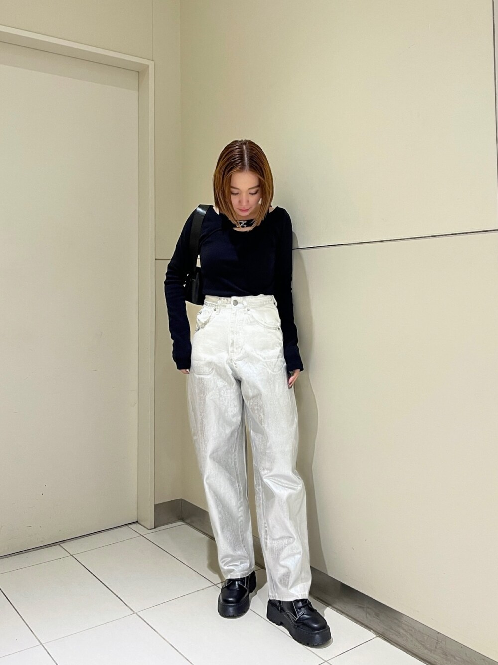 【tops】 MURUAらしい肌見せトップス♡1枚でお洒落に見せてくれます! 【denim】 トレンドのコクーンシルエットと箔プリントを載せたデニム♡カジュアル+モードな印象にしてくれます!156cm/S着用。 【shoes】 トレンドのレースアップブーツ♡インヒールが入っているので自然とスタイルアップが叶います!見た目以上に軽く長時間着用も◎ 24.0cm,甲高,幅広の私で37サイズ着用。 【bag】 シンプルで使いやすいbag♡ショルダー/ハンドどちらでも使用可能です!