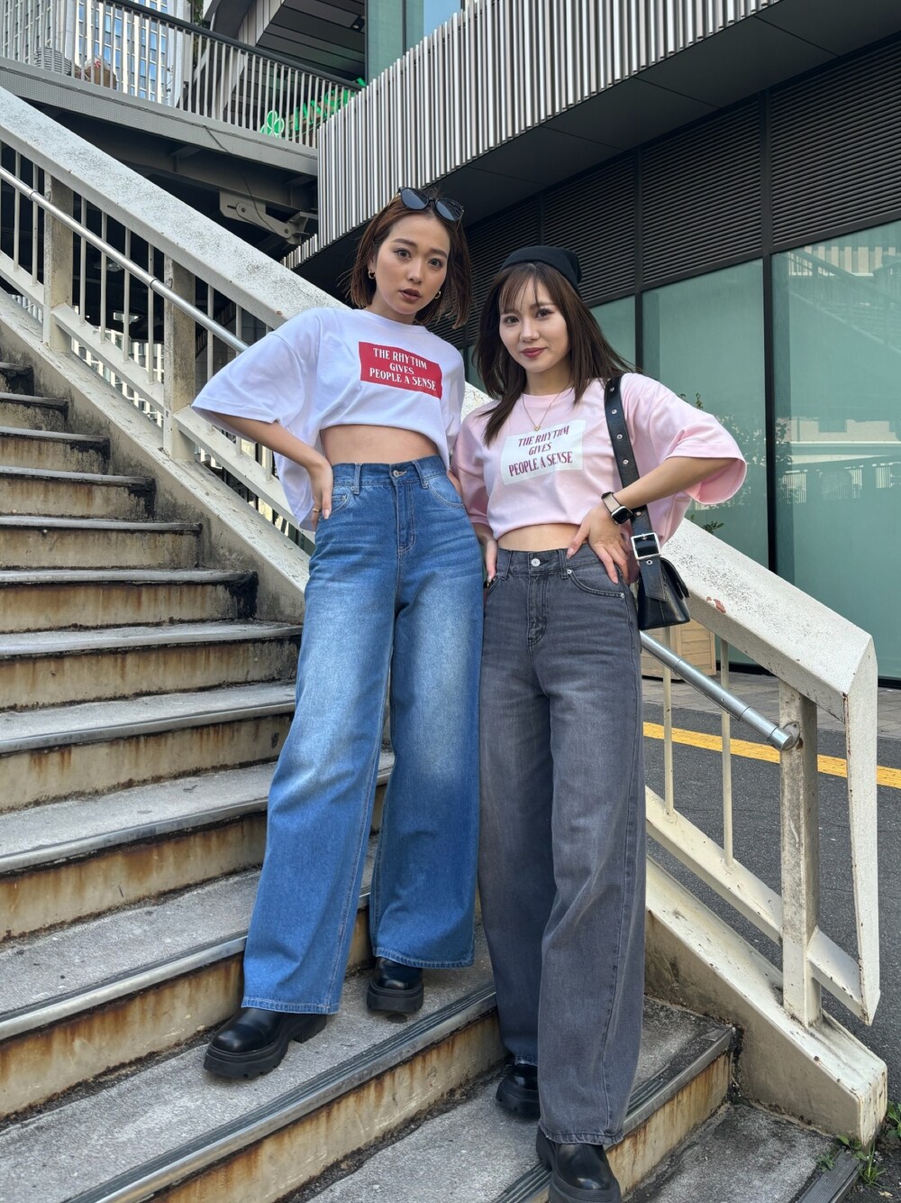 【t-shirt】 フロントプリントが目を惹くクロップド丈のTシャツ♡ 【denim】 トレンドのワイドデニム♡156cm/S着用。