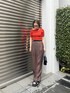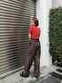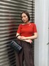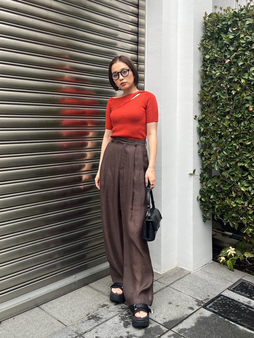 【tops】 フロントのデザインがかわいいトップス♡厚手すぎない生地感なので1枚でもジャケット合わせもおすすめ◎程よいタイトシルエットとチラッと肌見せで女性らしい印象に! 【pants】 シアー素材で夏にぴったりのパンツ♡ナチュラルな透け感なので肌見せ苦手な方でも履きやすいです◎同素材のシャツとセットアップで着用も可能。156cm/S着用。(厚底合わせがおすすめ) 【shoes】 SHAKAとコラボサンダル♡厚底なのに軽いので長時間の着用も可能◎ 甲高,幅広の私で24.0cm着用。